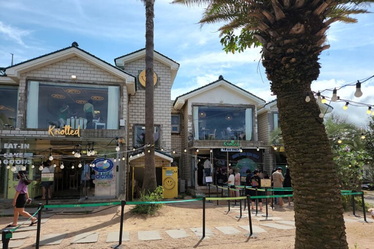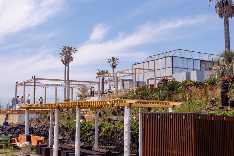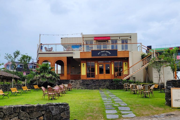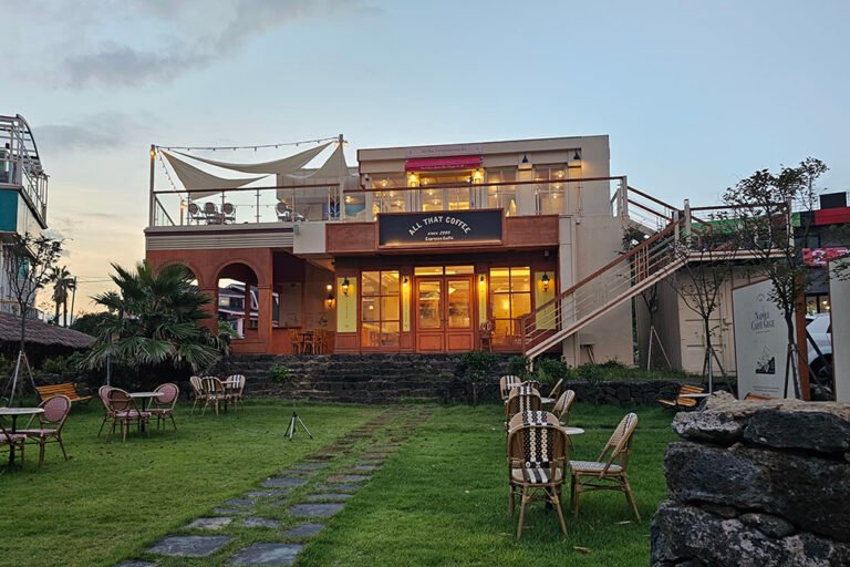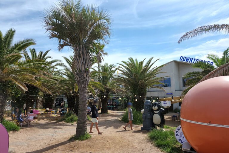 崖月邑-咖啡一条街有着很多的知名的咖啡厅,这里风景优美,网上有名的果冻海的发源地,向海面远远的望去还能看到那耸立的海中的风车,更是给这片美丽的景色增添了几份姿色,周围的黑色火山岩配合果冻海就是天然的出片胜地。