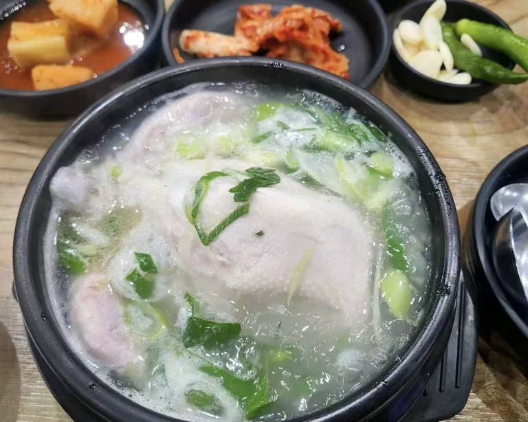 济州岛的参鸡汤是一道经典的韩国传统菜肴,通常选用童子鸡,在腹中塞入糯米、人参、红枣等食材,长时间炖煮而成。济州岛的代表性参鸡汤专卖店是1987年开业的“济原参鸡汤”,它提供经典参鸡汤和升级版的鲍鱼参鸡汤。参鸡汤以其营养丰富和味道鲜美而闻名,尤其是在当地和游客中都非常受欢迎