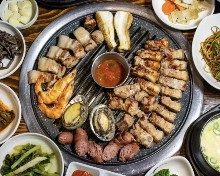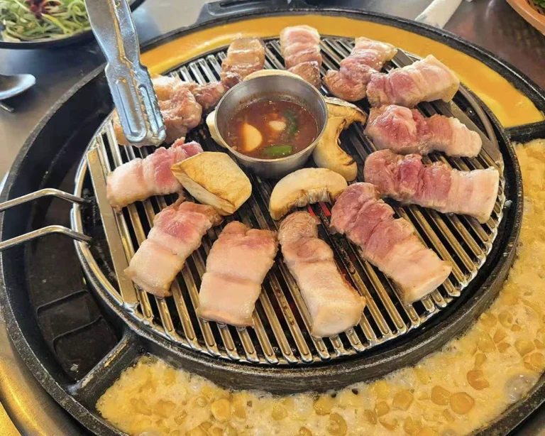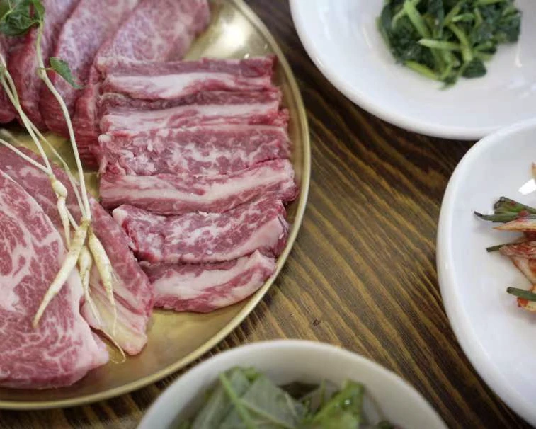 济州岛烤韩牛是体验当地美食的绝佳方式,其精髓在于使用高质量的韩牛,通常搭配各种蔬菜一起烤制。品尝时,可以将烤好的肉片用生菜包起来,加入大葱、豆芽菜等配料,蘸取酱料食用。此外,在济州岛,你还可以品尝到炭火烤制的牛内脏等其他烤肉选择。