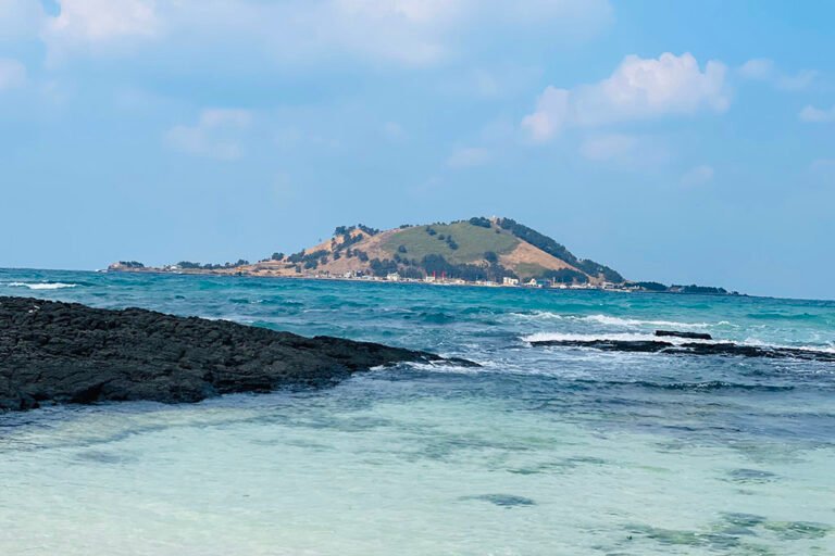 挟才海水浴场位于翰林邑西面,与翰林公园相连。海岸线长达9公里,到处都可看见蓝色的海水和绿色的松林,景色十分美丽。长20米的沙滩,海水较浅,仅为1.2米,坡度较缓,十分适合于全家人共同享受海水浴。海滨浴场的西南侧海岸与金陵海滨浴场相连,也有人将两处合称为挟才海滨浴场。此外,在济州岛的任何一处海岸上都可以看见汉拿山,这里也不例外。