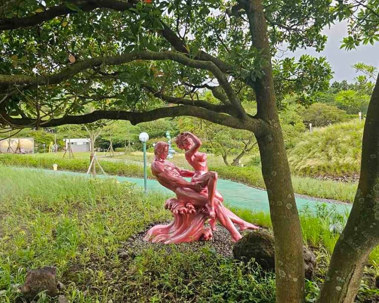 济州岛是韩国著名的旅游胜地,它位于韩国的最南端,有“韩国的珍珠”“韩国的夏威夷”之称。在岛上有一座性爱主题公园,它于2004年建成,已经成为济州岛上最受游客欢迎的旅游之地。为了不让韩国济州岛性爱主题公园成为色情的代名词,为了更好的表现人类对性爱的理解和认知,几乎韩国所有最著名的雕塑家和艺术家都多少参与了进来,提出好多好的设计建议和设想。如今 Love LAND 已经成为韩国济州岛最受游客们的欢迎必游之地,尤其是新婚情侣们,更把这里当做度蜜月的首选地