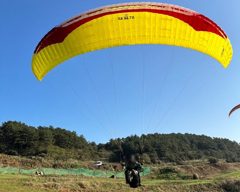 在济州岛西部地区,有一项紧张刺激的运动滑翔伞,如果你是喜欢挑战自我,热爱极限运动的爱好者,那么你可以来这里尝试挑战一下,这项娱乐活动惊险刺激,让你可以像鸟儿一样自由翱翔在天空之中,你可以大胆的尝试挑战,因为会有安全员陪同你一起上天翱翔,不必担心安全问题,而且还可以留下精美的天空自拍。