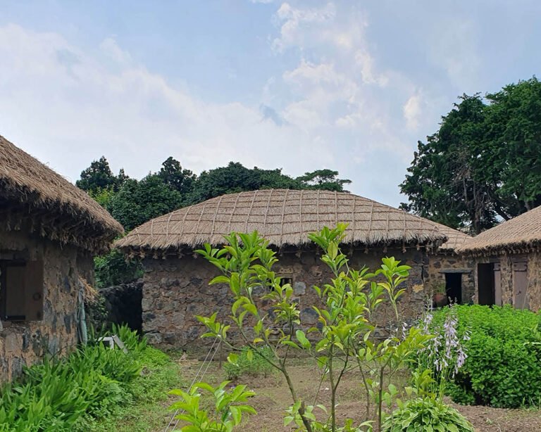 城邑民俗村位于汉拿山麓,有许多文化遗产,很好地保留了古代村庄的原貌,受到了韩国政府的保护。在这里的原住民每年会收到一份政府的补贴,让他们继续住在这里,保留民俗村的特色。民俗村现在有以前多人居住在这里。民居、乡校、古代官公署、石神像、碾子、城址、碑石等有形文化遗产及民歌、民俗游戏、乡土食品、民间工艺、济州方言等无形文化遗产。村子中间几百年树龄的榉树、朴树已被指定为自然保护对象。