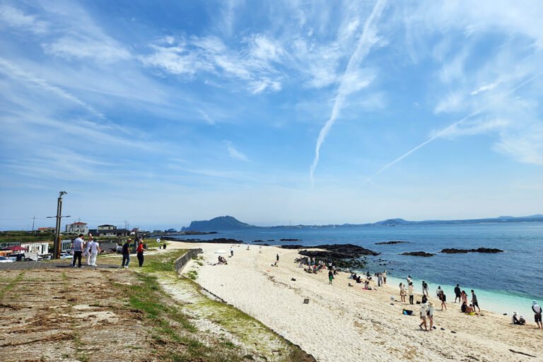 牛岛(우도),是在济州岛以北海岸外,面积约6.07平方公里,人口1752人。种植大蒜、花生,养殖鲍鱼,饲养家畜。有珊瑚之岛、海女之岛、灯塔之岛等别名的牛岛,是位于济州东部的一座小岛。整座岛屿状如卧牛,因此得“牛岛”之名。除去汉拿山寄生火山牛头峰以外,牛岛整体地势平缓,与海相临处绝壁陡立。