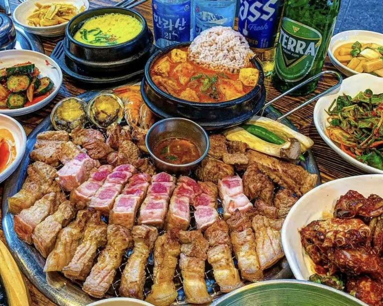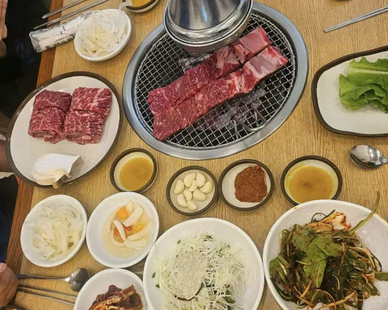 济州岛烤韩牛是体验当地美食的绝佳方式,其精髓在于使用高质量的韩牛,通常搭配各种蔬菜一起烤制。品尝时,可以将烤好的肉片用生菜包起来,加入大葱、豆芽菜等配料,蘸取酱料食用。此外,在济州岛,你还可以品尝到炭火烤制的牛内脏等其他烤肉选择。