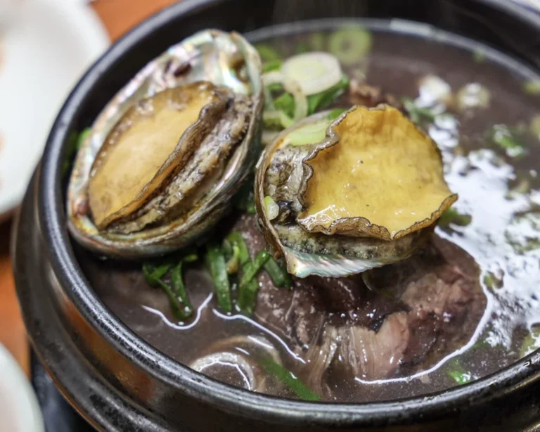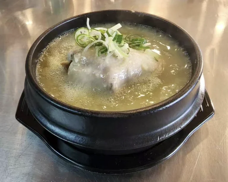 济州岛的参鸡汤是一道经典的韩国传统菜肴,通常选用童子鸡,在腹中塞入糯米、人参、红枣等食材,长时间炖煮而成。济州岛的代表性参鸡汤专卖店是1987年开业的“济原参鸡汤”,它提供经典参鸡汤和升级版的鲍鱼参鸡汤。参鸡汤以其营养丰富和味道鲜美而闻名,尤其是在当地和游客中都非常受欢迎